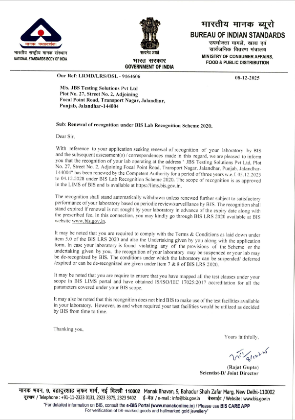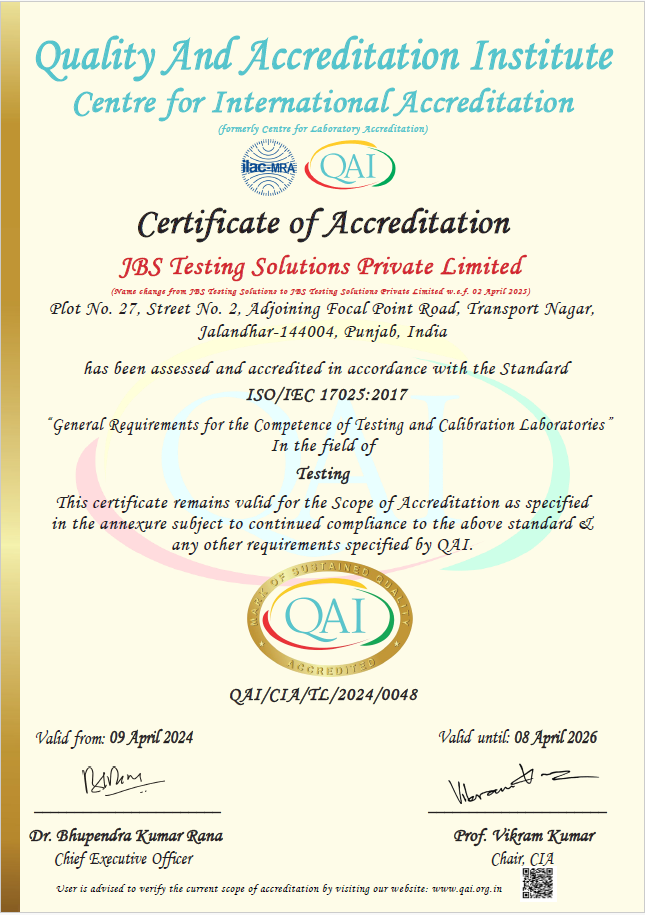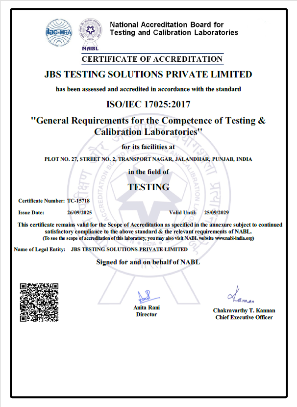 ISO CERTIFIED | NABL ACCREDITED | BIS RECOGNIZED (VIDE CERTIFICATE NO. CC-2300 & TC-15718)